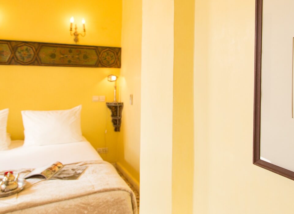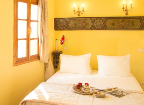 Décorée avec soin dans un style arabo-andalou, cette chambre allie charme traditionnel et confort moderne. Chaque détail est pensé pour offrir une atmosphère chaleureuse et raffinée, idéale pour un séjour reposant au cœur de la médina de Rabat.